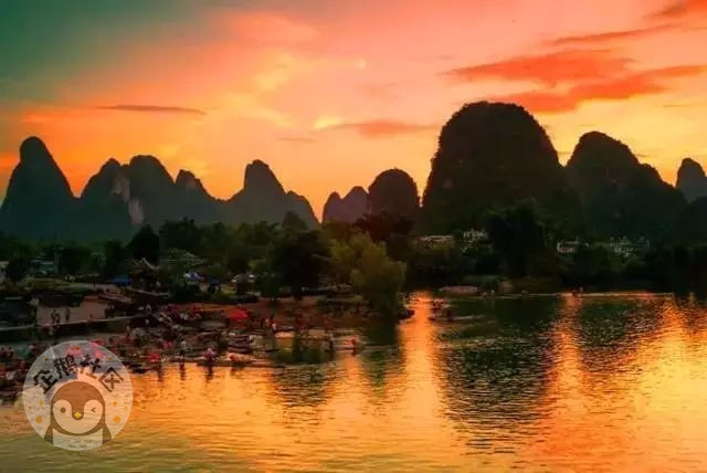 日出漓江,云雾缭绕,胜似仙境;日落漓江,余晖铺满,一片祥和;烟雨漓江,迷离梦幻,飘飘渺渺。