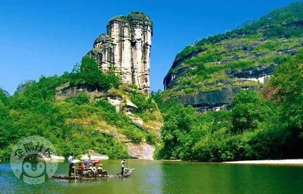 武夷山拥有世界自然遗产和世界文化遗产双重头衔,青山绿水蓝天,一步一美景。九曲溪绕山而行,山与水紧密结合。