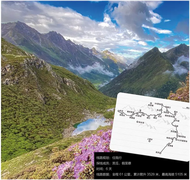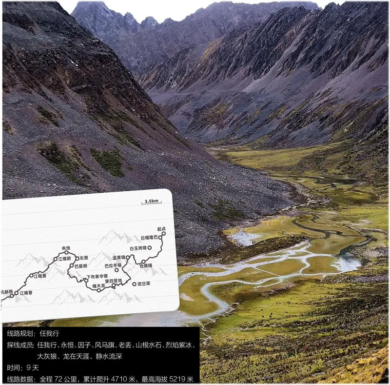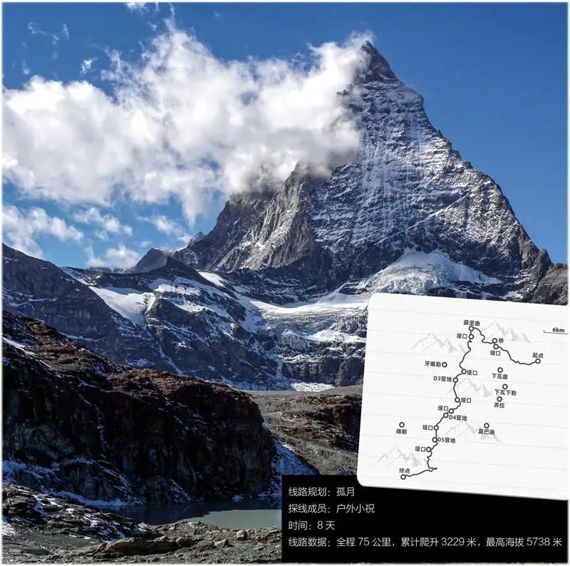 在户外徒步圈里,他念他翁和梅里雪山,是非常经典的两大区域。但此前还没有一条线路,是能将这两大经典区域连通起来的,不过他梅线做到了。
