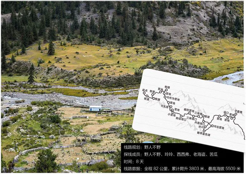 线路平均海拔较高,营地海拔4000米左右,大部分时间都有明显牧道。主要特色为湖泊、雪山、牧场、菌菇和原始森林。