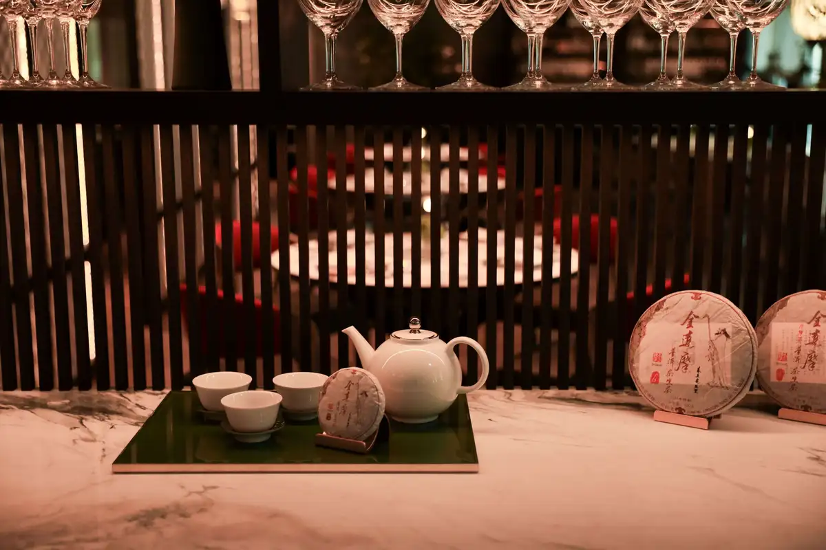 優雅的室內設計就像是一首詩,它挖掘人性最深層的情感,引導我們尋獲內心寧靜,如同詩句的每一個字眼都經過細緻雕琢,Lillian Wu以「茶」為靈感導出一整部空間大戲,其中的主角——POUYUENJI藏茶,包括創辦人早期愛茶初心的鹿谷凍頂烏龍、綻放熟果香韻味的「東方美人」、老欉岩韻的「武夷岩茶水仙王」、雲南六大茶山千年古樹的「金達摩生普洱茶」、陳年老生普洱茶、經典元紀熟普⋯⋯,上演出喚醒味蕾的「醒茶」、分享餐食美好的「元茶」、與凝聚相聚時光的「怡茶」。
