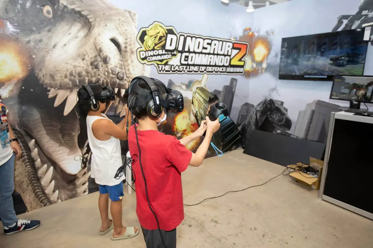 國產VR遊戲《恐龍突擊隊2:最後防線》試玩區。