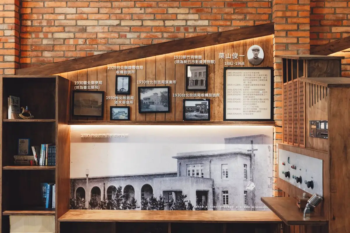 板橋放送所由日治時期台灣總督府技師栗山俊一所督造,為重要的廣播設施,戰後則轉變為「中廣板橋發射站」,建築立面可見水平線條與弧線形式,為日治後期轉向現代主義風格的設計手法。其以獨特的歷史意義與建築價值於2015年被指定為新北市市定古蹟,修復完成後的戶外空間今已開放,傍晚可見國小學童奔跑笑鬧,居民散步遛狗,有別於一街之隔的塵囂,老樹茂葉下微風徐吹令人心曠神怡。