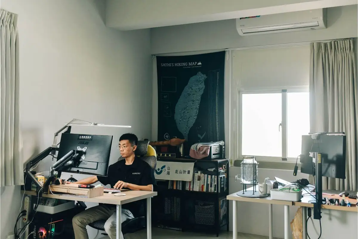 「從這裡看得到西濱的風力發電,另一邊就是八卦山脈。」在彰化埔鹽周圍一片農地中的民房三樓,林威廷解釋著SAYHi 山海視覺製作(以下簡稱山海視覺)命名的由來,「地理位置以外,我跟夥伴們都喜歡潛水、爬山,早期我們也拍攝爬百岳的影片,用我們的視角拍出台灣的美,因此我們就用『山海』,表達我們對山海的熱愛。」