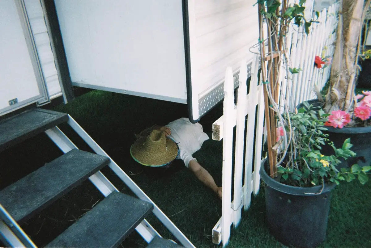 躲在拖車下睡覺的隨行攝影師鳳小岳。