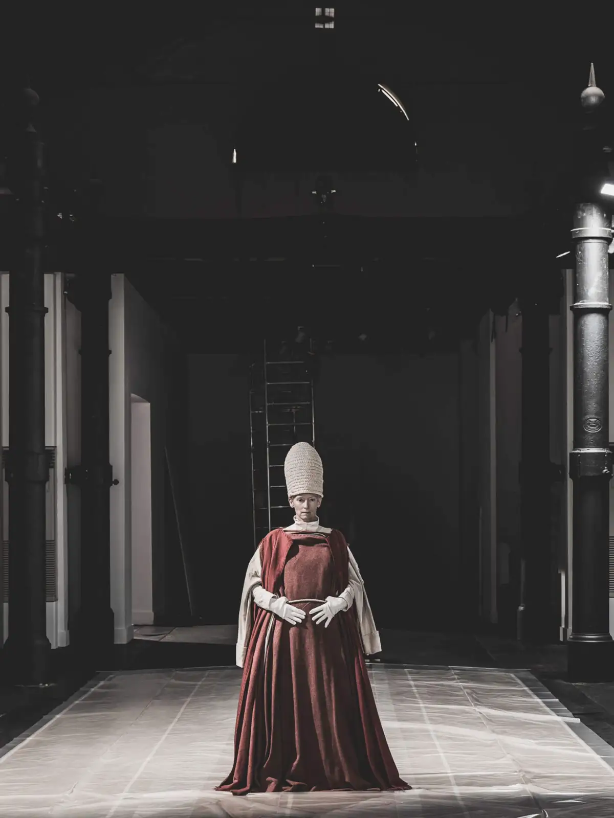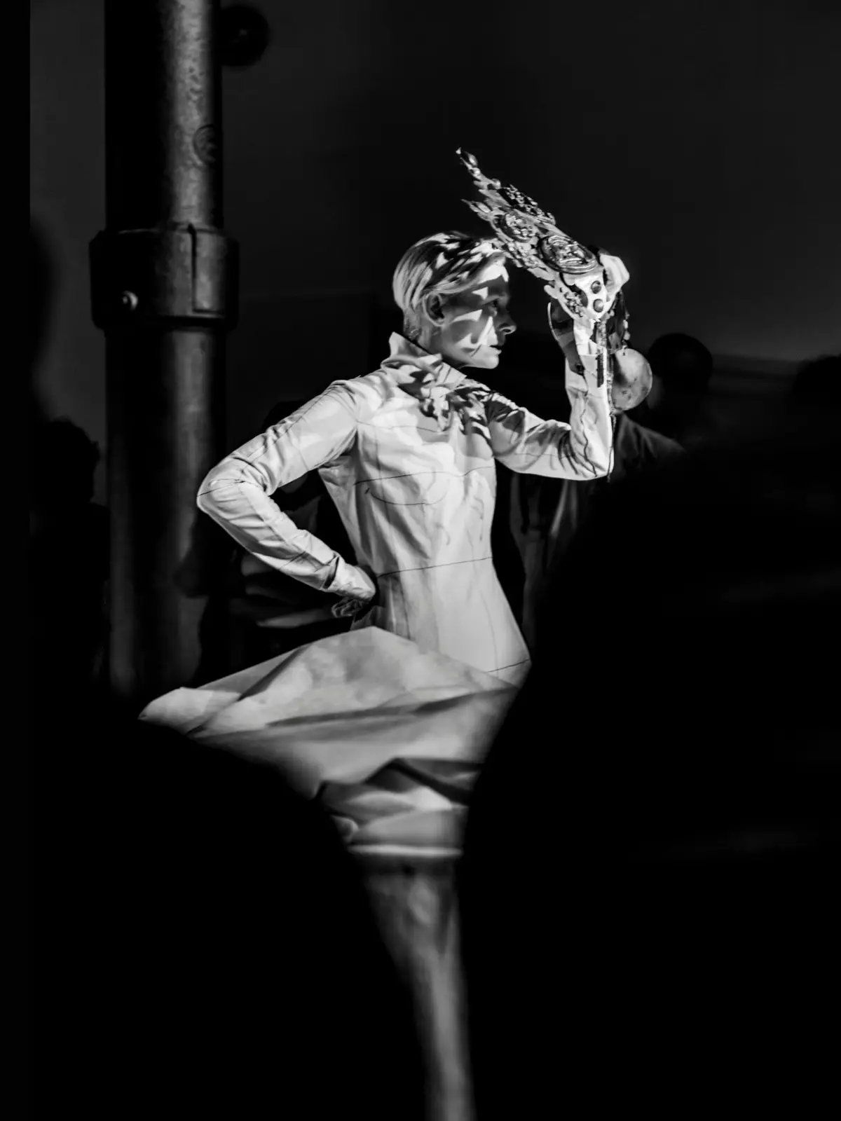 這場表演中,沒有劇情、也沒有事件,服裝從演員的身體抽離,成為主角。而蒂妲・史雲頓則成為完美的載體,隱藏在布料後面,揭示服裝的另一面。