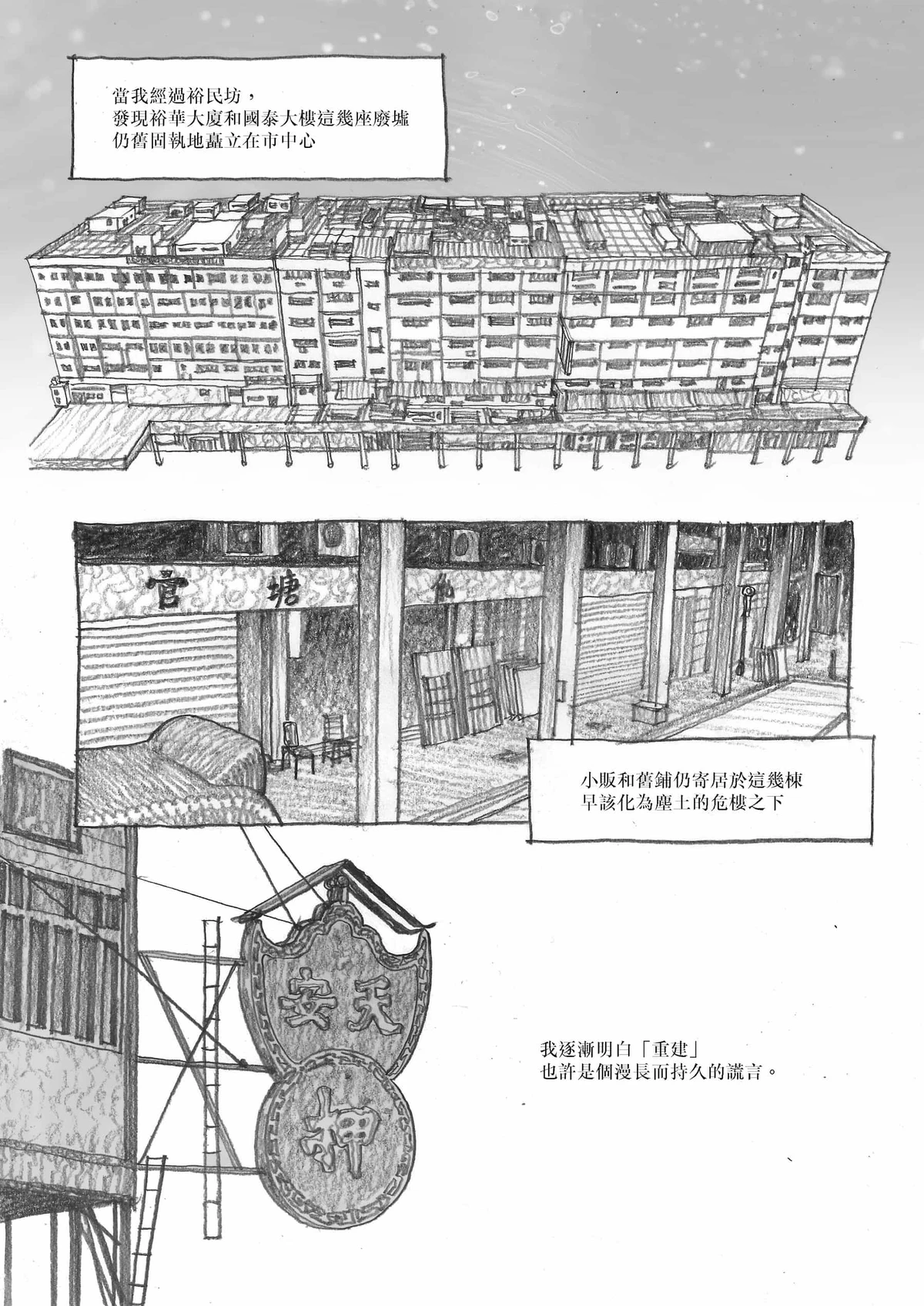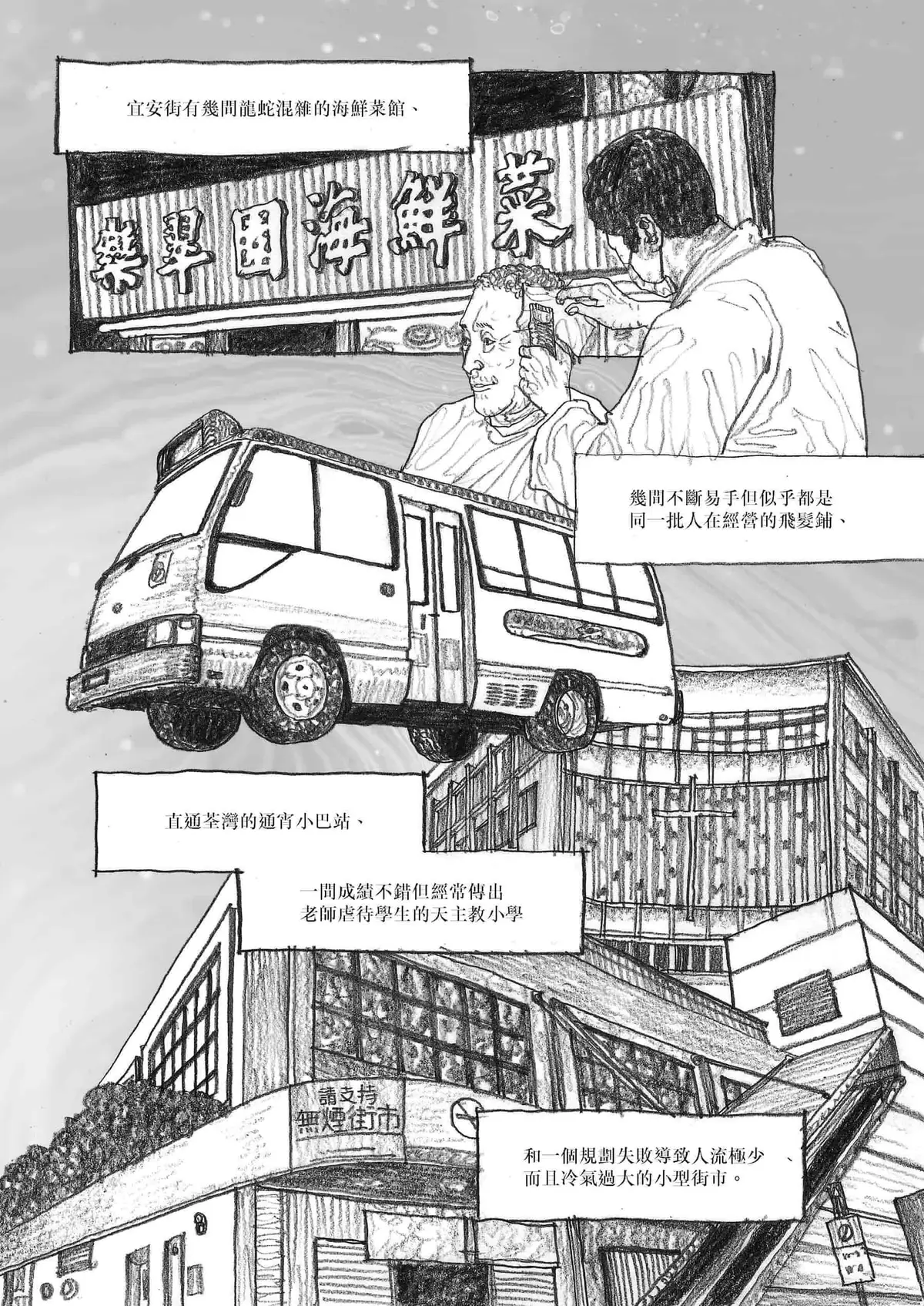同樣地,或許我在作為改編者角色的加持下,我同樣察覺「我」與我存在著微妙的距離,在語境意識無法全然重疊。「我」不真正是我,我是每個作者—「我」的轉譯者;我不是第一人稱的「我」,我是代入每篇文章改編原著、繪製漫畫的他者。而香港明明是我人生中住得最久的地方,卻因遷移的慣性而不願種下甚麼情感與記憶。面對香港那些一個又一個擦身而過的、被我視作臨時空間的大街小巷,我確實也沒法挺起胸膛說出香港與那些街道是「我的香港與我的街道」。