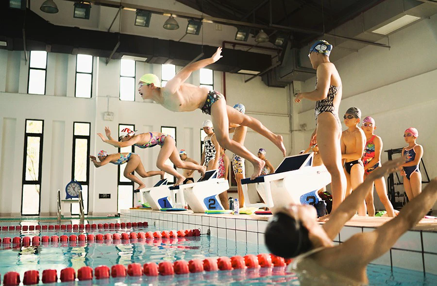 结束了三轮训练, 队员们在池边休息,江苏南京,2022年 顾勤