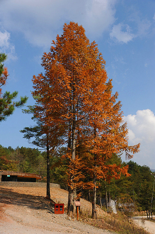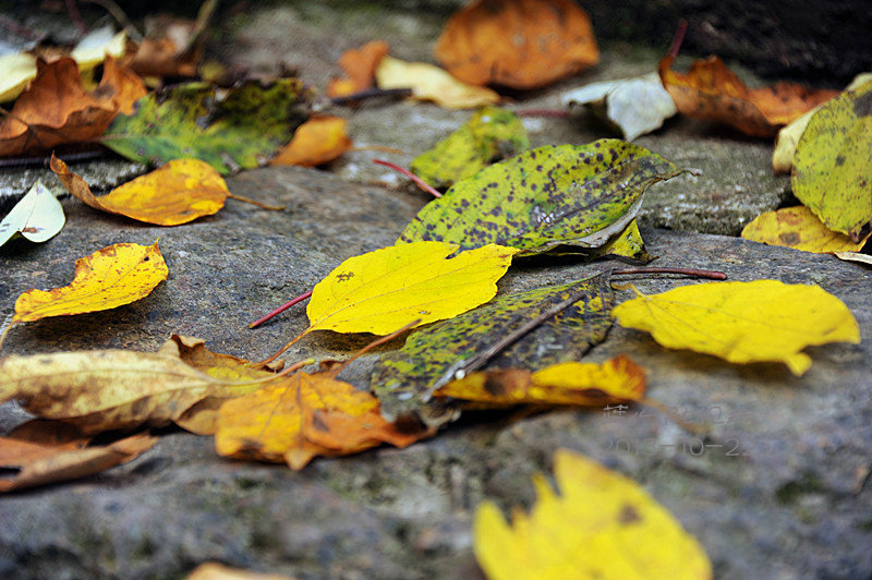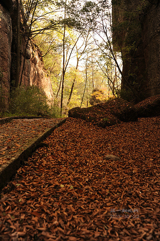 下图:秋季中的观景道上,随处的落叶倒也成了拍照不错的选择。
