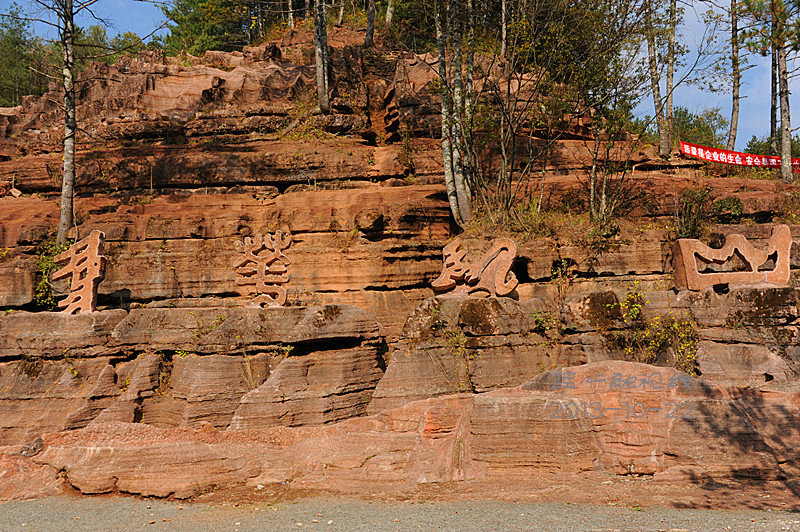 下图:景区内独有的中华龙山景观,是2008年汶川大地震震开山体后发现的一处奇特地质现象。该山形成于4亿至5亿年前的奥陶纪,地质运动形成了红褐色的酷似龙鳞、龙脊、龙爪造型的山体,岩面酷似巨龙,形象逼真,活灵活现,具有极高的观赏和科考价值。我想这是亿年从海底升起并形成的一种岩石纹路,在这里被称为“中华龙鳞石”,也算是非常奇特的一种岩石,这样的岩石在国内的其他地方我倒是还没有见到。