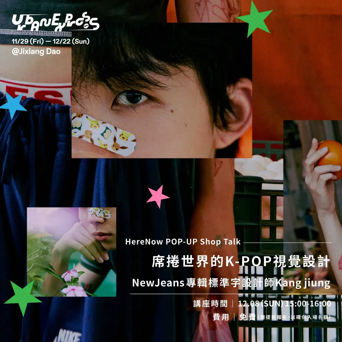 擅長深入流行趨勢,音樂與設計也是HereNow關注的重點。本次快閃店重磅邀請韓國女團NewJeans專輯標準字設計師Kang jiung設計主視覺,以「城市快遞」為題,展現跨越國籍的共同符碼,將流行語言變成消費文化中的快遞輪廓。12月8日設計師Kang jiung也將親臨台北現場,以「席捲世界的K-POP視覺設計」為題,主講與女團NewJeans等韓國流行指標合作之設計經驗,見證韓流與設計間的文化爆擊。