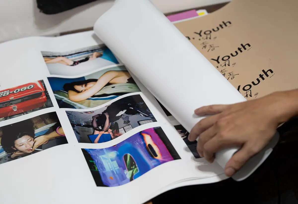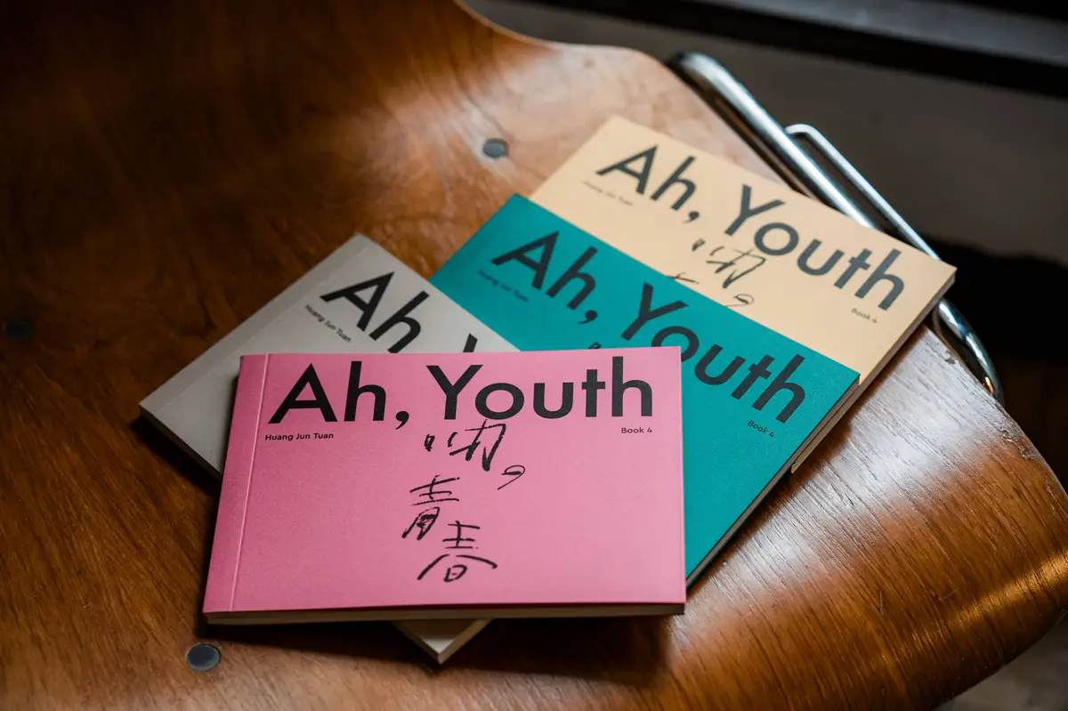 從第一本《一瞬千擊ONE SHOT》到這本《吶,青春》,他的攝影集封面設計也歷經轉變。過往黑色暗調被四種鮮明色彩取代——由不毛 nomo®creative 的林祐仟操刀設計、攝影書店 moom 支持,用昂貴的元素紙凸顯質感。這看似隨意的決定,其實折射出黃俊團對作品發表形式的深思:輕巧的攝影集是照片發展的主要載體,而非等待多年才出版的厚重精裝刊物;網路的瞬間消逝,唯有實體印刷,才能承載時間的重量,也讓青春得以被永久收藏。