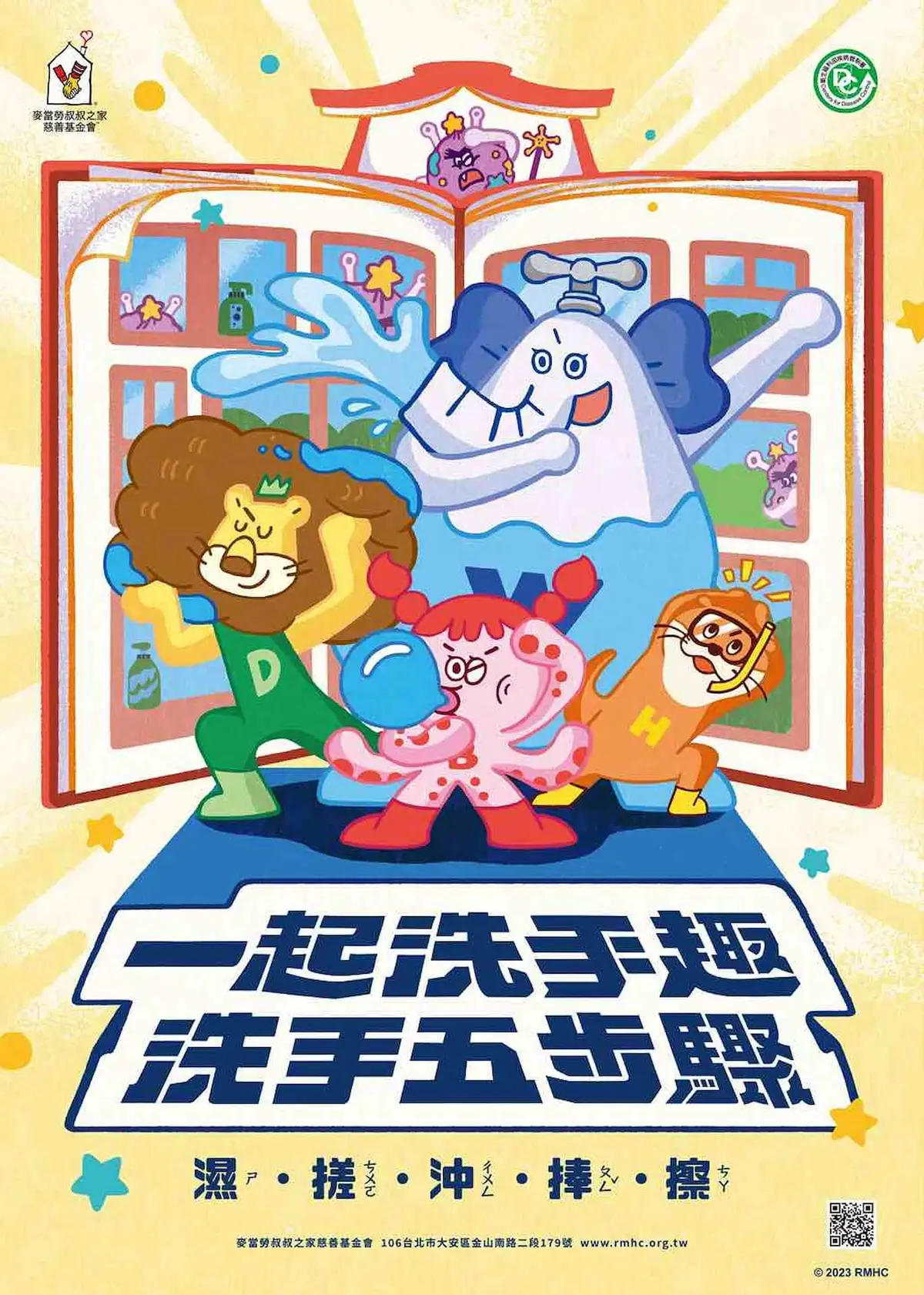 馮宇為麥當勞叔叔之家慈善基金會設計的「愛洗手小隊」。