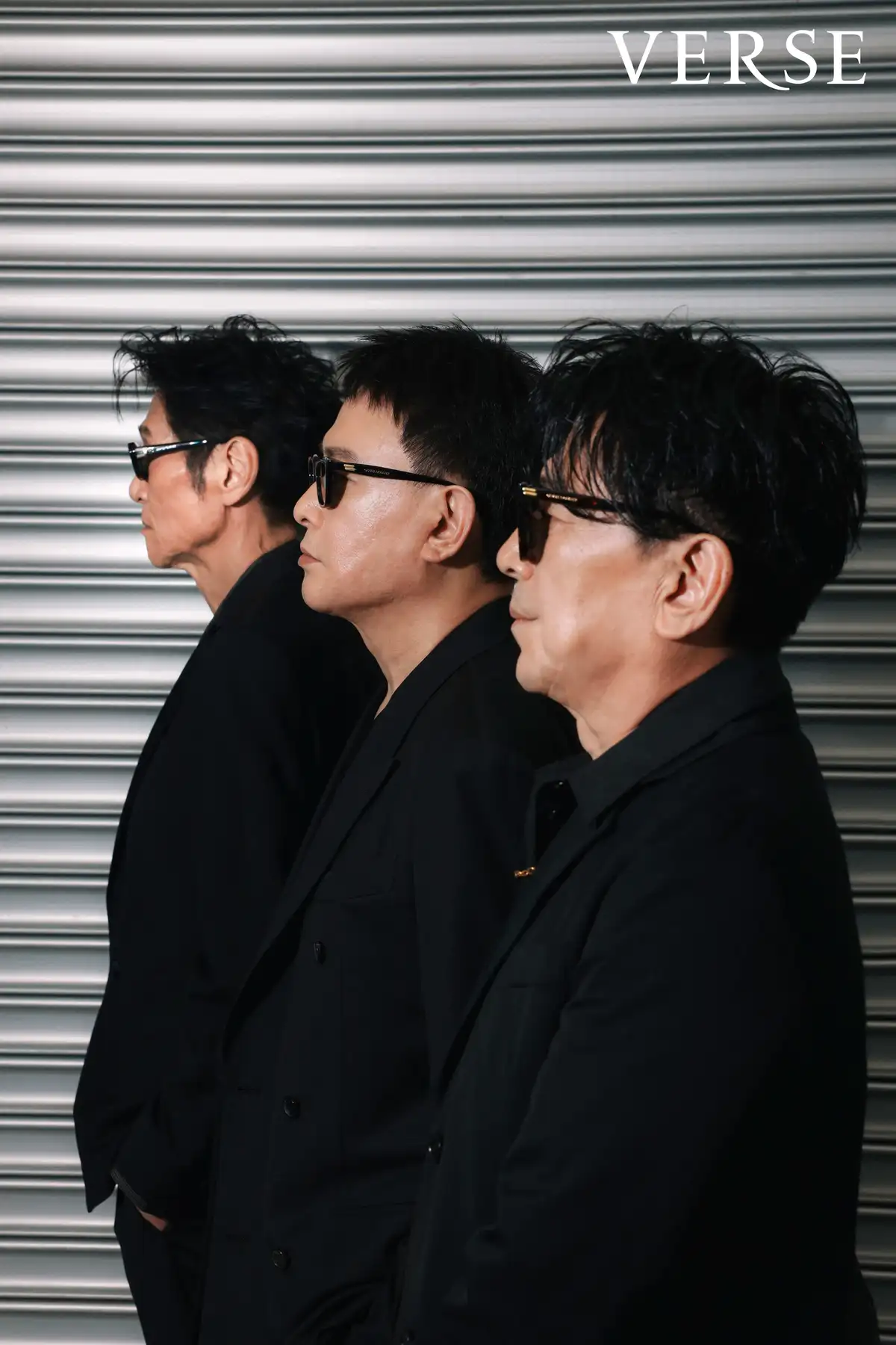服裝/高捷:黑色大衣 by Simone Rocha,黑色襯衫 by Nanushka from de sidere7.1,金色項鍊 by Pandora,黑色墨鏡 by Gentle Monster。喜翔:西裝外套、⻄裝褲 by Pacewing,緞面條紋襯衫 by Martine Rose from de sidere7.1,黑色墨鏡 by Gentle Monster。王識賢:黑色西裝、西裝褲 by Pacewing,古巴領襯衫 by John Varvatos,黑色墨鏡 by Gentle Monster,戒指 by Drilling Lab。