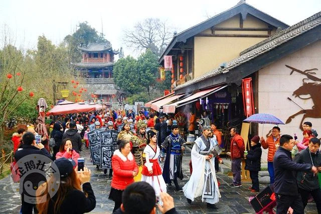 游客还可参与智慧三国·挑战诸葛(九连环、孔明锁、华容道)互动体验,在民间手工集市购买精美的手工艺品。逛累了,来到三国文化美食街,关中美食,陕南风味,巴蜀特色,在这儿应有尽有,国际美食节也将在诸葛古镇景区内举行。