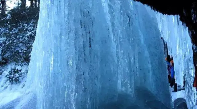 瓦屋山的兰溪瀑布,在冬天的时候已经结成冰瀑了,爬山看水偶遇国宝,这就是瓦屋山!
