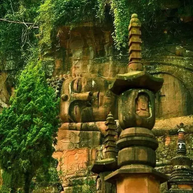 世界第一大双佛也位于此,佛像建于唐朝,至今已有近两千年的历史了,虽然没有乐山大佛那么出名,但是佛像脖子上的圈圈还是可以研究一哈的,笑脸。