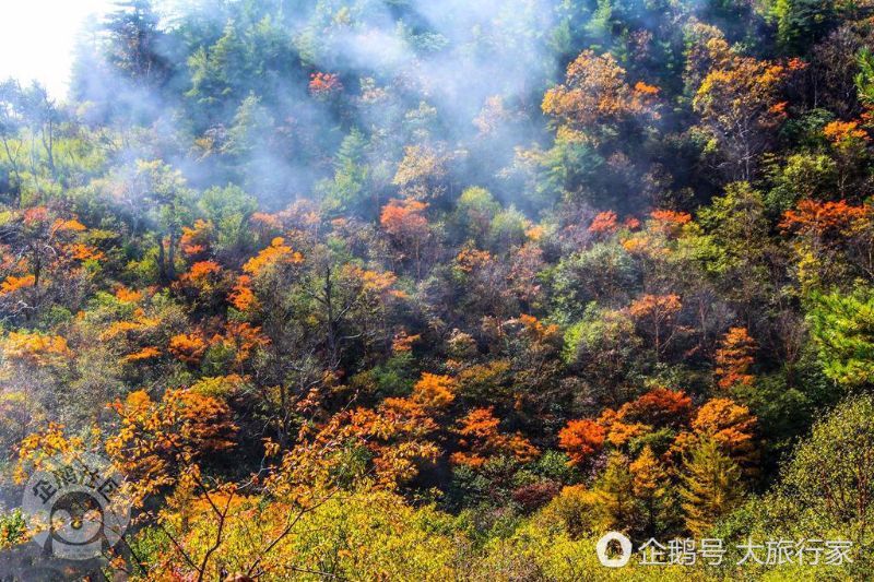 【秦岭分水岭秋景】走进秦岭,如同进入一个梦境里,河流飘着雾气,远山云雾缭绕,空谷幽静,白云深处藏人家……古诗里描绘的美景在这里随处可见,身临仙境的美妙意境让人流连忘返。(图/水月雨妃)