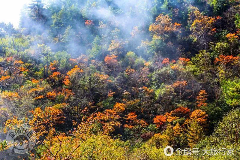 在西安,深秋一定要走一趟秦岭,连绵的山脉在视线里伸向远方,即使是在潇潇秋雨的季节,金黄色的落叶飘落,仿佛像是天空洒下美丽的星辰。(图/水月雨妃)