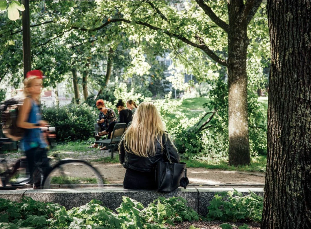 当飞机抵达芬兰湾北部沿岸上空,一座被海岸和森林围绕的美丽城市就会出现在眼前。其中最显眼的部分,是一片带状的深邃绿意——Keskuspuisto中央公园,赫尔辛基的心脏。