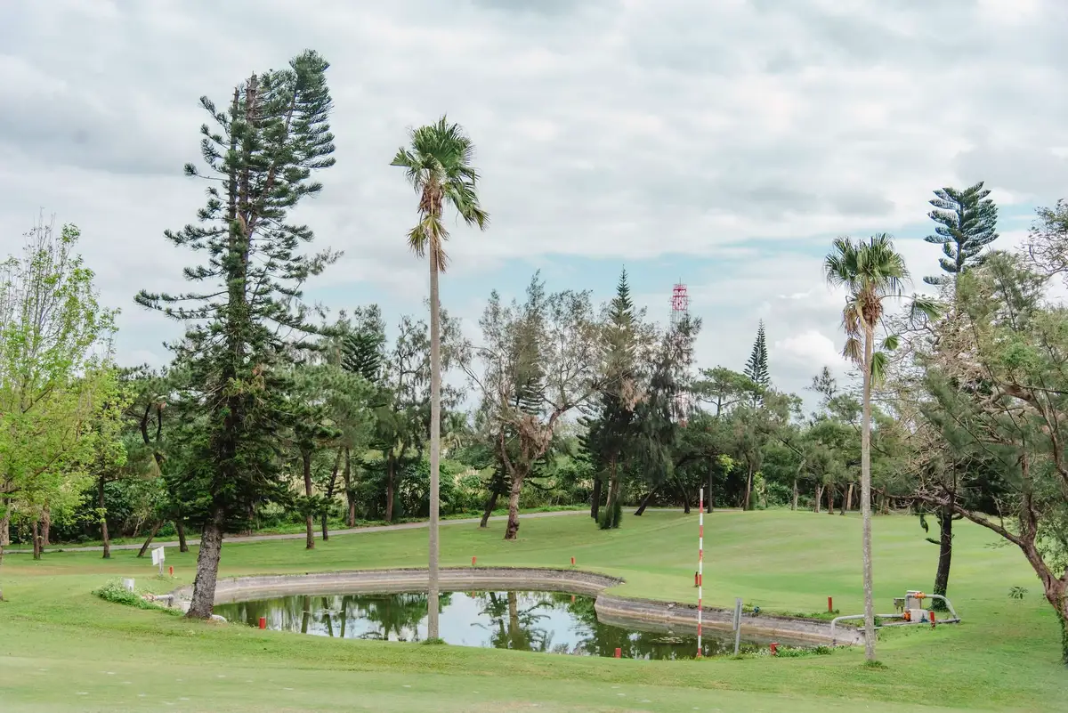 「有時間的時候,我很喜歡用走的打完全場。」林副總邊走邊說,尤其這座球場上擁有豐富的樹種,不只可遮陽,走路時還可以近距離觀察每棵樹的生長狀態,「那邊是『椰榕共生』,那個池塘裡有幾隻水鴨家族,傍晚幸運的話還可以看到住在球場裡的一隻狐蝠,是瀕臨絕種保育類動物,展翼可以長達一公尺。」佔地將近四十公頃的土地,藏著蓬勃生機,每一處都有著不同的故事。