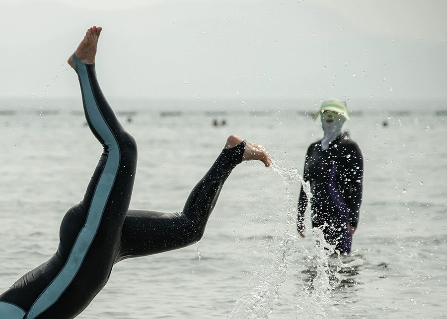 在这片绵软温柔的沙滩,你可以尽情地欣赏风景,更可以培养一种或几种体育爱好,释放激情,或者在运动里重新找回年轻时的自己。青岛的“全民健身”政策也的确落到了实处,不说那些星罗棋布的体育场馆和帆船基地,就单单在第一海水浴场,就能看到许多人每天风雨无阻地来参加他们喜欢的运动。下海游泳,沙滩足球、沙滩排球、海边下棋……再加上海滩上设置的各种力量器械,这里的运动项目之多,将其称为老百姓生活中的“海边奥林匹克”丝毫不为过。