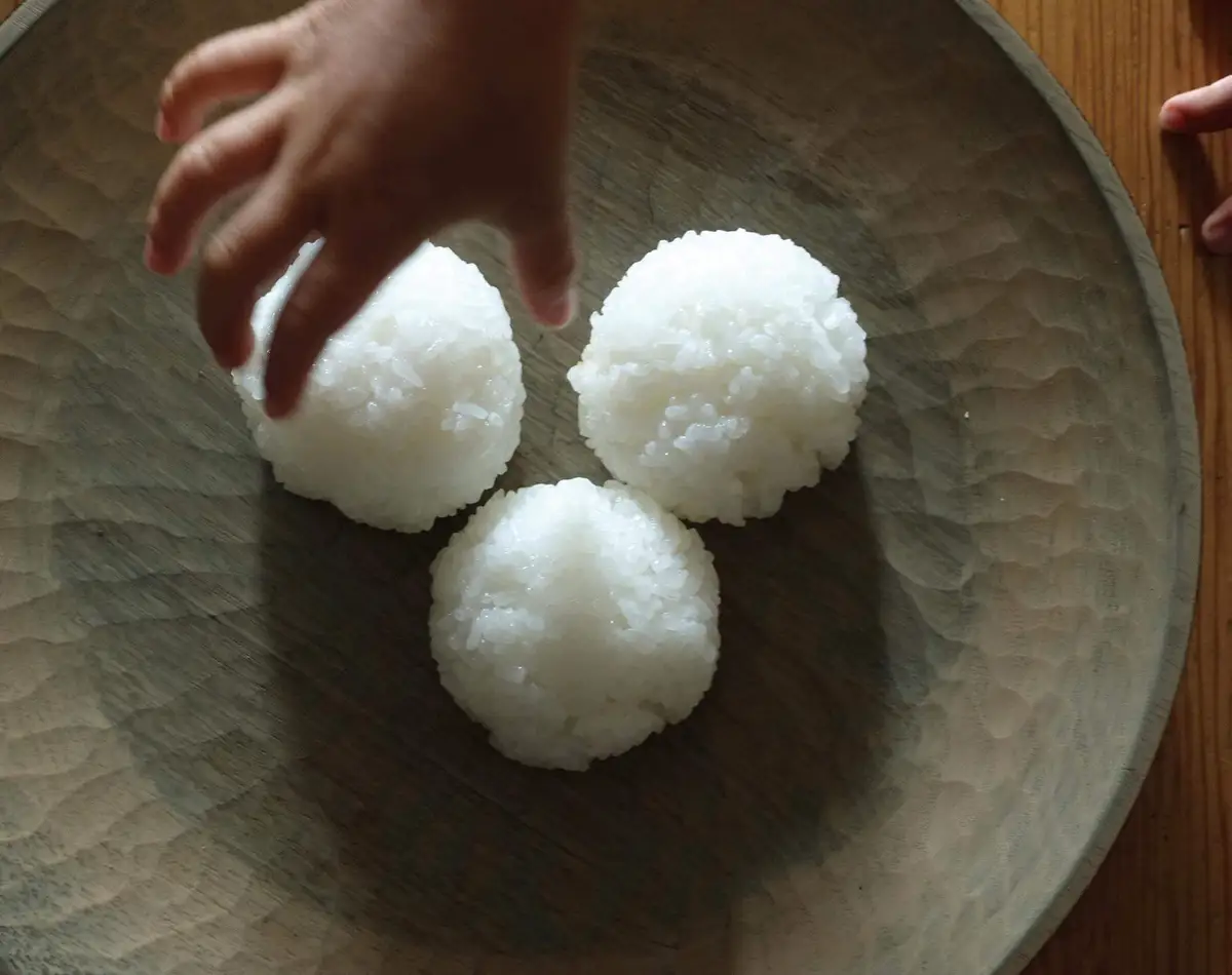 秋末初冬,新米已上市了。吸飽水的新米,煮出的白飯粒粒晶瑩。我洗了手,準備捏鹽飯糰,配菜是拌了豆腐的柿子。這是當下季節的味道,沒有比這更棒的味道了。
