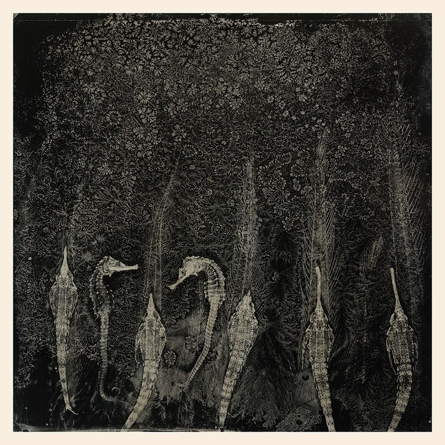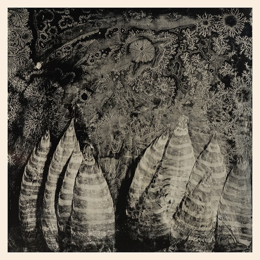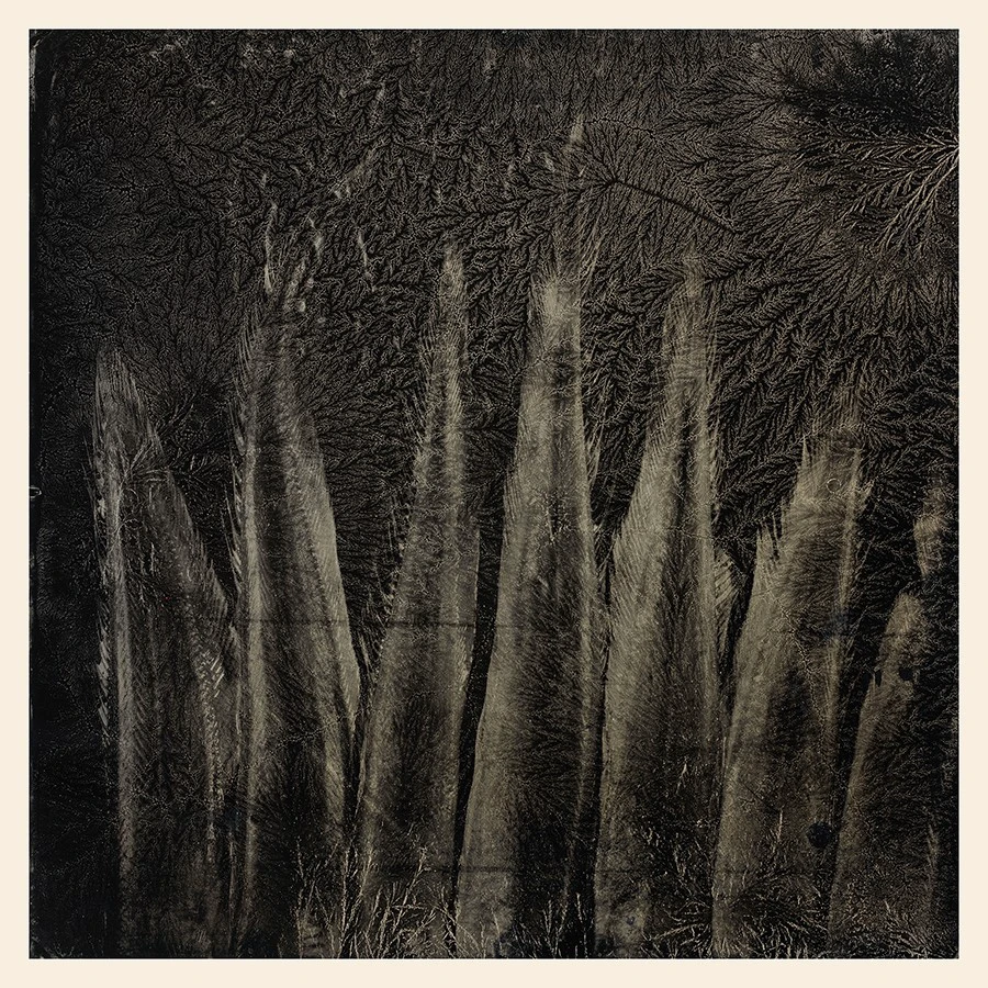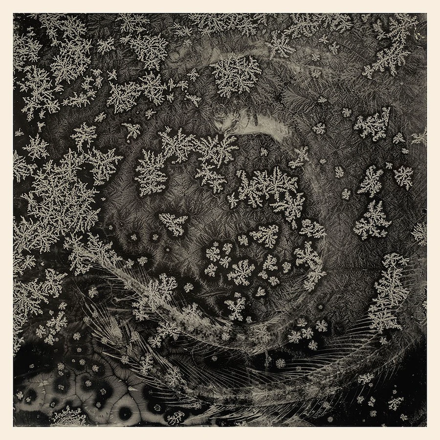 在湿版摄影创作中,我偶然发现废弃的黑铝版在低温环境下竟然结晶出形态各异、纹路清晰的冰花,这激发我进行更深入的观察与摸索。刚开始我用拍坏了的铝板来做冰花,自然形成的冰花形态美妙且变化多端,尤其在合适的环境条件下,更是恣意地成长与蔓延。这种无法控制的形态,不在我此前的创作模式里。我不得不重新思考一下自己到底想要什么?一段时间之后,我觉得自己必须在冰花自然形成的规律中注入我想表现的元素,而不只是外在美的展现。我开始尝试去控制冰花形成的进程,并间接影响冰花最后的样貌。“湿版摄影与冰花的碰撞”无疑为我打开了一扇窗,让我拾回古典工艺摄影的技法,并去挖掘它更多的可能性。