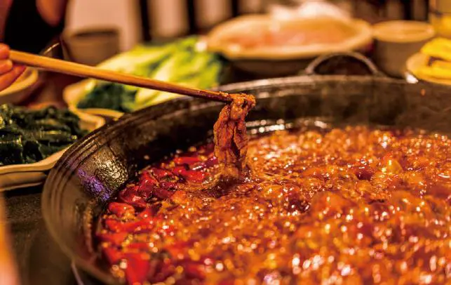 重庆的饮食几乎无菜不辣,人们说连锅碗瓢盆都被辣味渗透了。我这个江南人一开始真不习惯,甚至害怕,只能靠多吃白米饭、多喝白开水来解辣。后来,我才慢慢习惯且喜欢上了吃辣。有时候,我会和朋友找地方吃一顿正宗的火锅。我的所谓正宗,就是比平时的更辣。我们不仅放已经含有很多辣椒的牛油火锅料,还要用纱布另扎一个小袋子,里面塞满辣椒和花椒,让它一直沉在锅里煮着,越煮越能释放出辣味——当然还有香气。