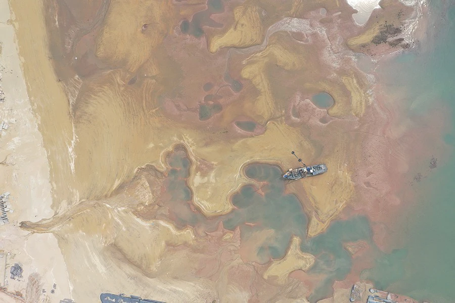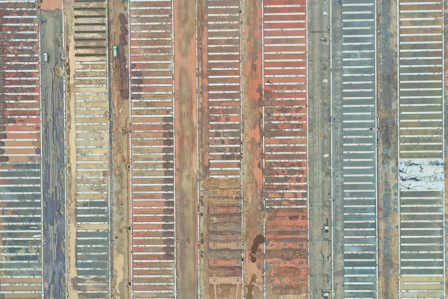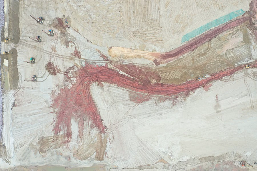 这组作品航拍了钦州港大榄坪作业区自动化码头、散杂货码头的建设,试图客观地展示拍摄现场的状态,并以抽象的表现方法来呈现钦州港具象的发展变迁。