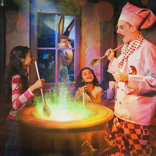 立即查看和史瑞克见面 | Meet and greet Shrek这趟魔幻的旅程将从踏上这辆红色魔法飞车、驶向Far Far Away王国开始。从魔力水晶球到甜美的姜饼,从魔幻的法术到可以摇晃的魔镜;在史瑞克沼泽地见到灰姑娘,撞上靴子猫,拯救备受折磨的匹诺曹,与姜饼人一起施展法术,收集特殊道具来找到史瑞克并最终安全回家。整个旅途虽“麻烦”不断,但乐趣十足!