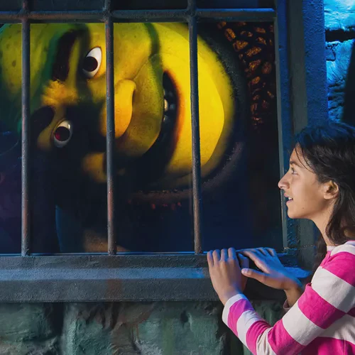 “阴森监狱”是史瑞克冒险乐园的最后一个关卡,侏儒怪对魔法入口下了诅咒,把你困在了监狱里!不过别担心,Fiona公主会来拯救大家,帮大家找到出路,成功逃脱监狱。最后大家会来到最为欢乐的互动厅,还会见到来自梦工厂的其他明星角色。一站式打卡简直不要太值!