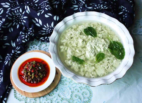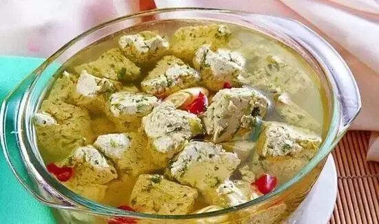 菜豆腐是汉中人爱吃且百吃不厌的一种家常菜,用上好的酸浆水点出的豆腐白细、软嫩,后味绵长,略带甘甜。