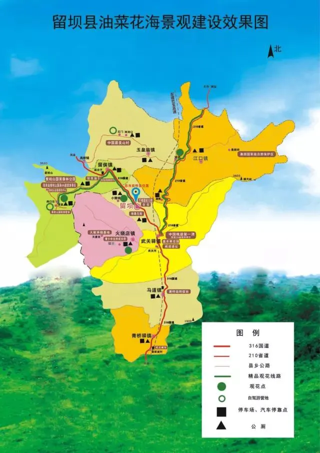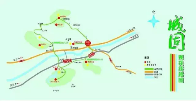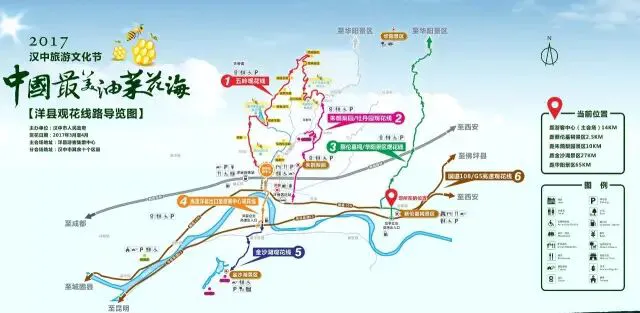 6、高速路洋县出口至游客集散中心观花线: G5高速路洋县出口——县城西——游客集散中心。