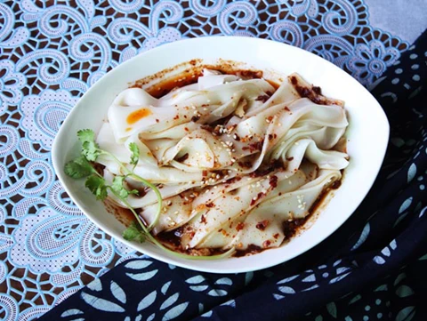 城固面皮:食之爽口,风味独特。面皮除凉食和热吃外,还有浆水面皮、西红柿面皮、炒面皮、烩面皮等多种吃法,当地人称之为“城固料理”。