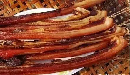 南郑黄官腊肉煮熟切成片,透明发亮,色泽鲜艳,黄里透红,吃起来味道醇香。