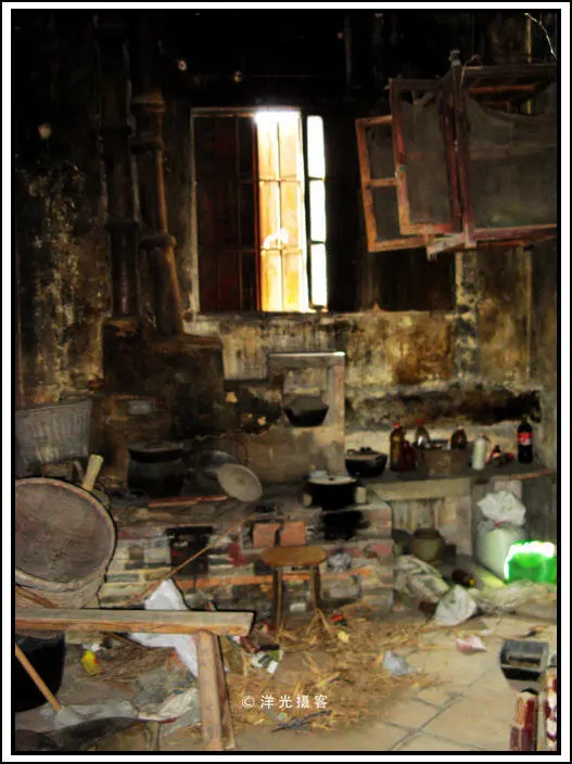 老者引领我们入屋,一楼是会客厅及厨房,客厅如今只是堆满杂物,其中一角还有一个精致的西式壁炉,这种用于取暖用的壁炉其实在南方根本用不着,因此这更多的是用于装饰,毕竟碉楼的主人基本是长期旅居国外的侨民,受西方思想观念影响较大,在家乡建碉楼,主要的目的不是为了自住,更多的是为了光宗耀祖。
