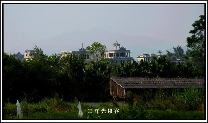 开平这里阡陌交通,鸡犬相闻,田间的青苗已开始长出了稻穗,稻田那头,有座小土坡,坡上也建满碉楼,风格各异,远远望去,似乎那里还住有人家。本想过去看看,奈何同行的伙伴似乎对此并不是很感兴趣,只好放弃。