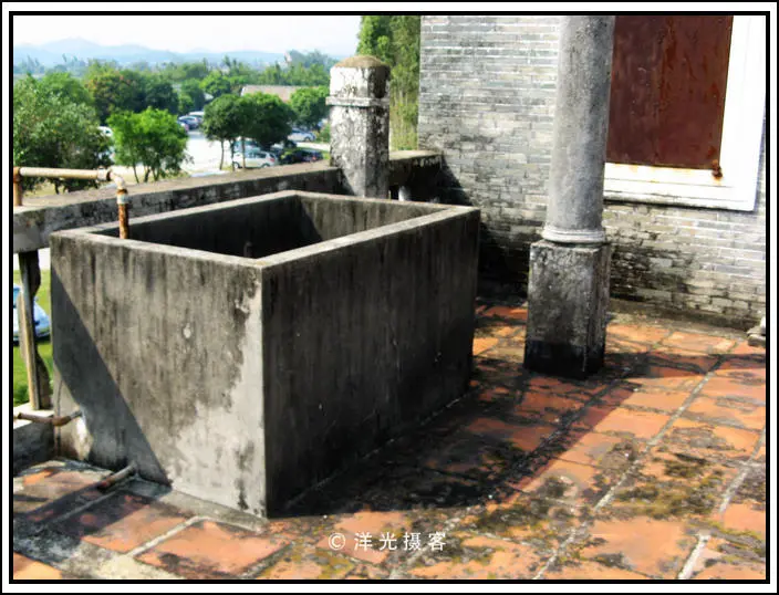 阳台上修建有一个储水池,以前池里都会灌满水,即使被围困,断水,这水池里的水也足够维持一段时间等救援。