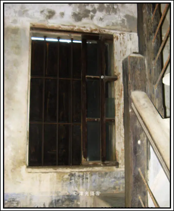 老者让我们随便参观,无碍。我们沿着楼梯上楼,楼梯转角有扇窗户,仔细一瞧,竟然是三层。靠里是木框纱窗,用于防蚊虫;中间是铁条做成的窗格,每根铁条直径大约有2厘米,全部由国外进口,主要用于防盗;靠外则是厚实的铁板窗门,用于阻挡盗匪的枪弹弓弩。再看看墙体,竟然厚达一尺多。想想,那时这里社会动乱,匪患不断。