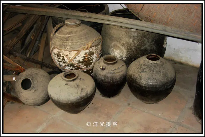 三楼是储物间,显得有点凌乱。老者说,这些都是些酒坛子和米缸,房子所有的生活物资都存放在三楼,这也是为了保证不时之需。