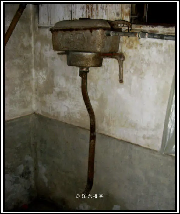 卫生间里的抽水马桶上的水箱早已破损,样子一看就是舶来品。