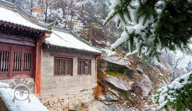 下雪天,可以想到去观雪的地方很多。比如山顶、竹林、湖畔等等。但感觉最好的,莫过于去寺庙拜佛看雪。