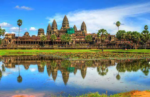 其中,柬埔寨国家的标志吴哥窟,展现在柬埔寨的国旗上,是世界上最大的庙宇,同时也是世界上最早的哥特式建筑。