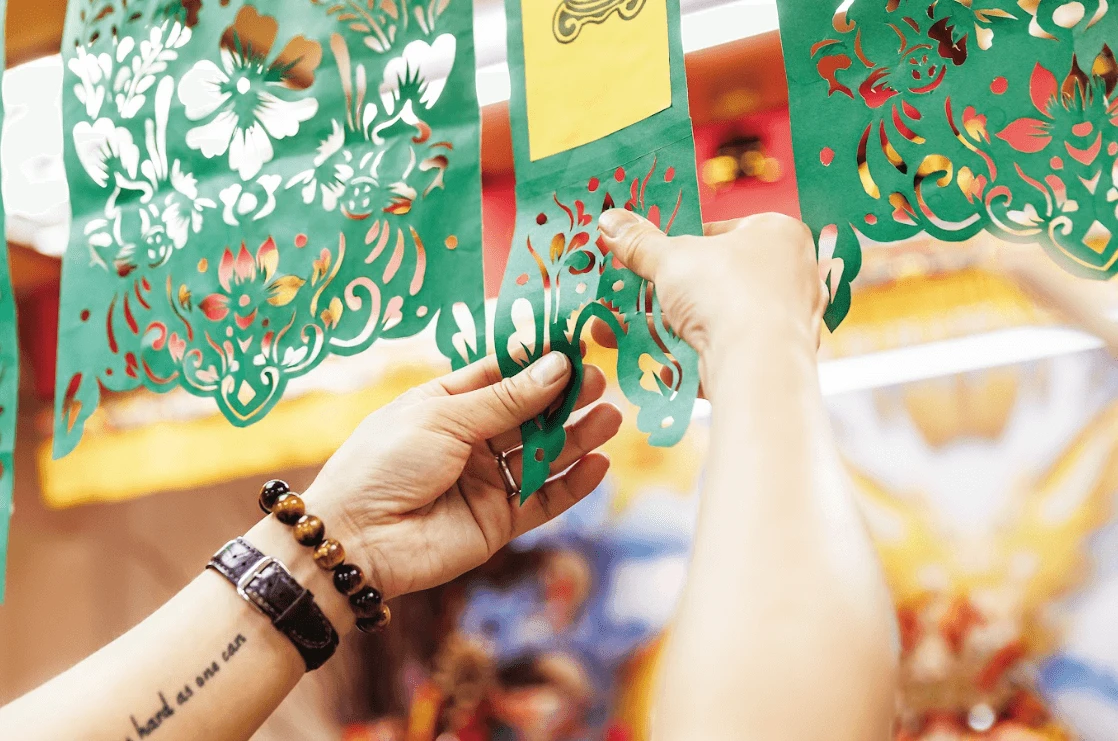 屋子裡那些看起來像裝飾的東西,其實都有他的用意,每一根柱子、每一片牆,都藏著設計邏輯和誠意。有一 年,他的水燈屋頂貼滿彩虹,回應了人間的婚姻平權;另一年,他用鴿子做意象,傳遞和平。他不只迎我們回來,也讓我們知道這個時代在發生什麼,他說,想要讓陰界也感受到人間的進步。
