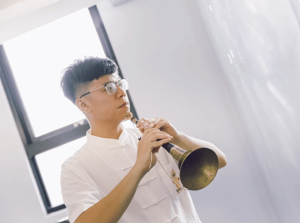 有一次,他參與了新竹都城隍廟的「開福門」儀式。那天,他站在現場吹奏,現場擁擠悶熱,但虎門一開,忽然感到一陣清涼的氣流滑過背後,他說,那不是風,是「我們來了」的感覺。他沒有轉身,也沒有多話,只是讓自己站得更穩,那一刻他明白了:「祢們不是概念,而是真實存在的」。