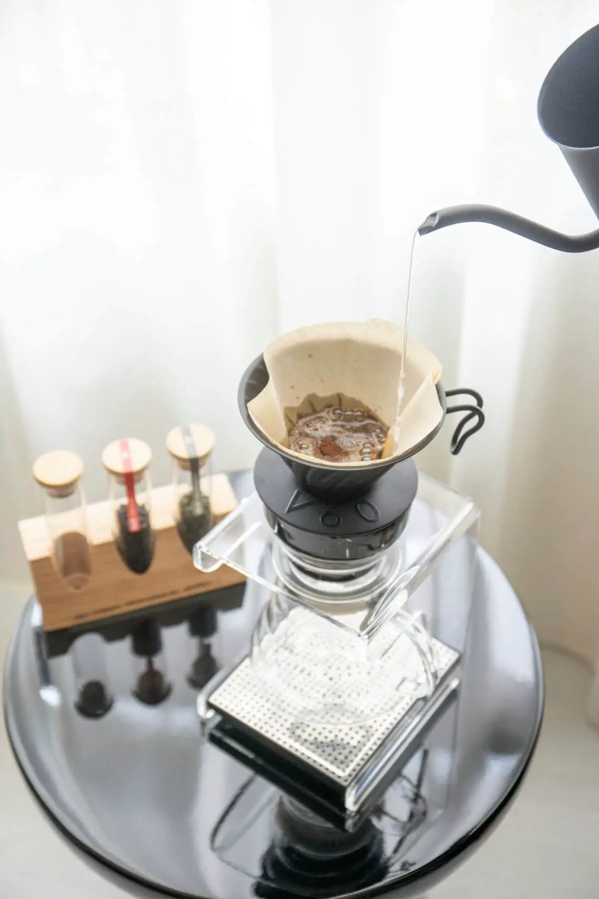 在這裡,所有細節皆細膩安排。在睡到自然醒的清晨,客房內的home bar能為品味者帶來驚喜,使用VWI by CHADWANG鮮磨咖啡粉搭配精品手沖器具,掃描桌上的QR Code即見世界沖煮咖啡大賽冠軍王策,手把手教你沖一杯好咖啡。