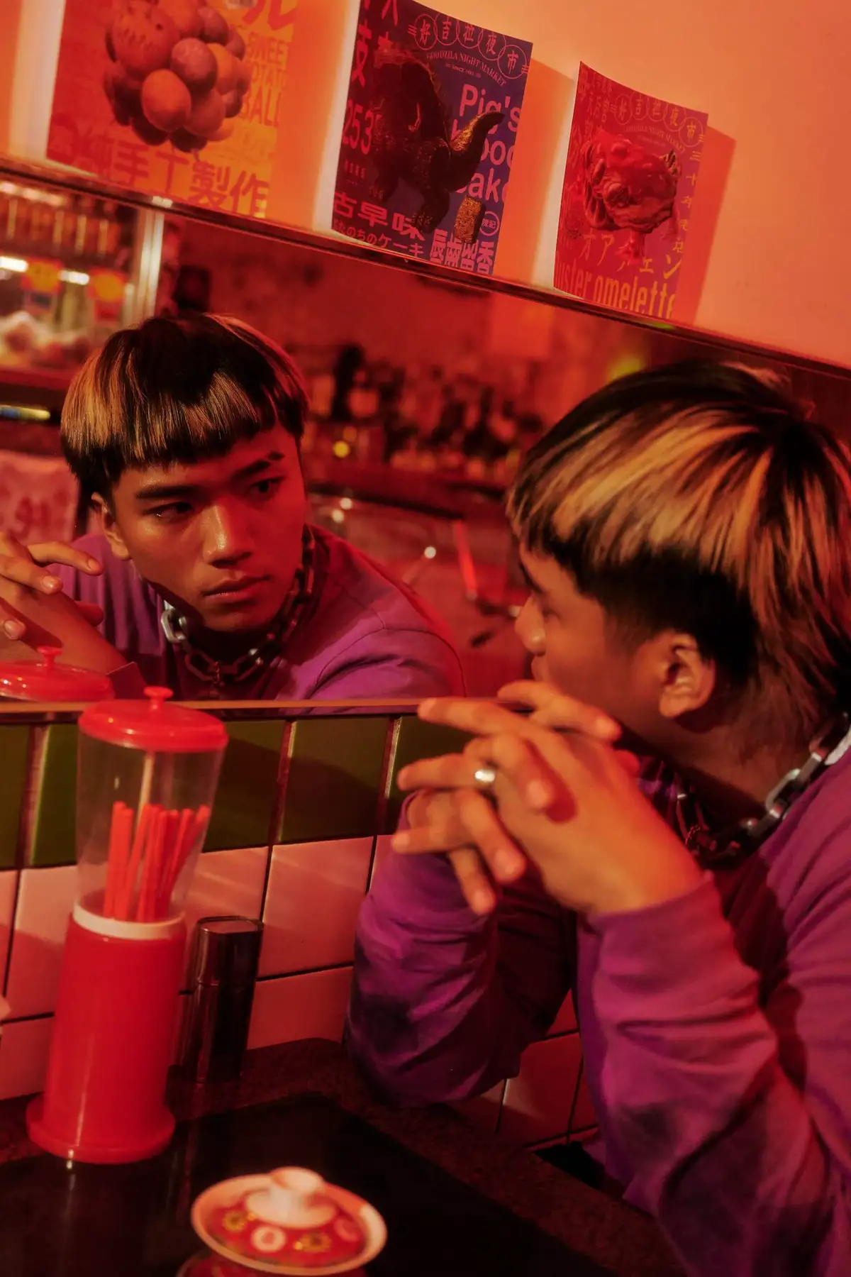 他有著一群志同道合、玩音樂的好兄弟——除了所屬團體「萬魔殿」和所屬社團「崑山嘻研」(崑山科技大學嘻哈研究社),阿跨面難得開了話匣,聊起在台南生活的趣事。大男生聚在一起,不需要太多活動便是樂趣滿滿,他更笑稱參加社團後來甚至當了社長,都未曾繳過社費,其他社員都不知情。自參加學校嘻研社後,身邊認識更多能切磋饒舌技術,互相激勵想法的同道中人,也讓他對於創作這件事更上心,即便仍是玩心居多,但也多少有了進步的動力。