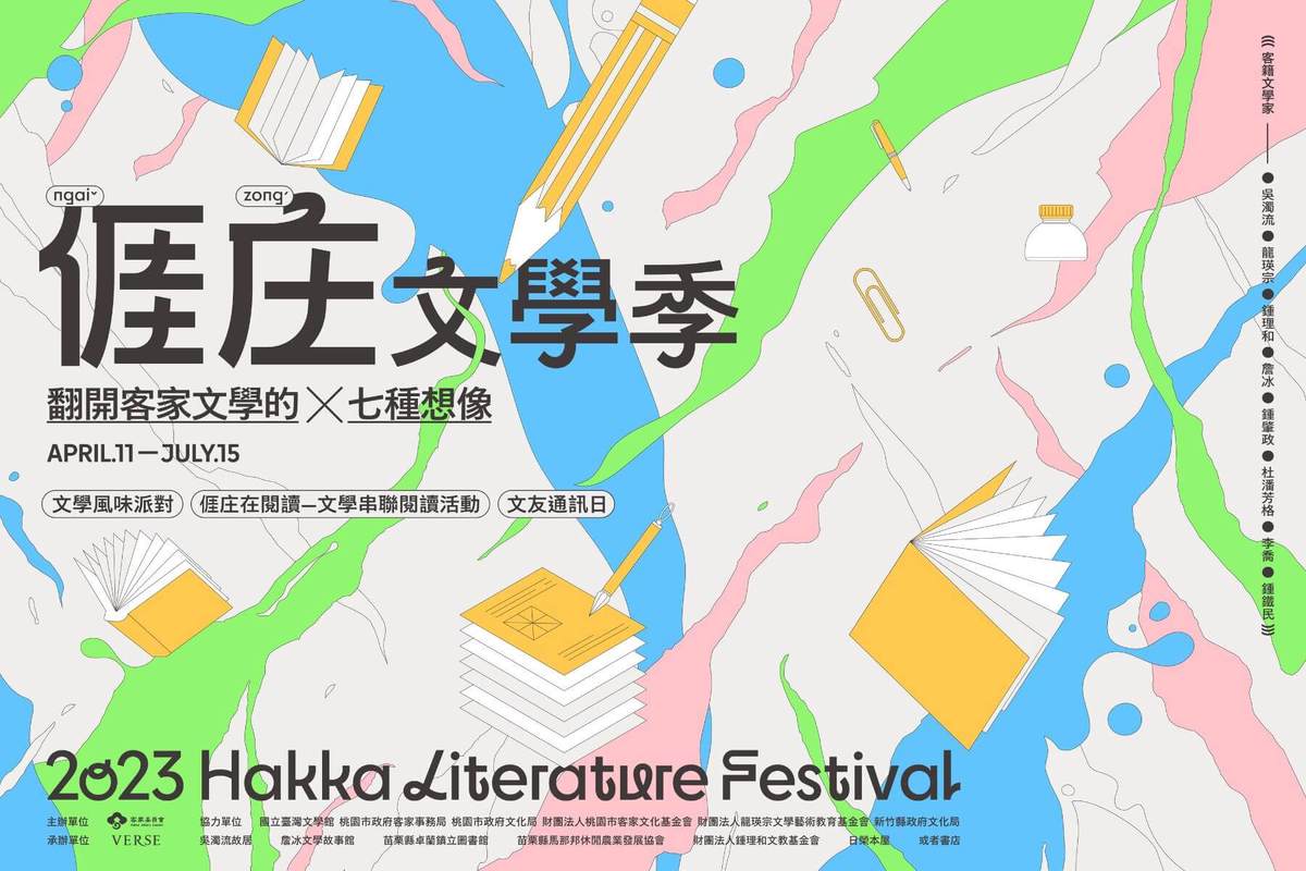 4月11日起,由客家委員會攜手文化雜誌《VERSE》舉辦的「(亻厓)庄文學季」正式開幕,將於4/15 - 7/15期間,圍繞亻厓庄文學系列選集,在全台客家文學館舍或獨立書店舉辦文學行讀、在地閱讀沙龍、亻厓庄文學巡迴展等實體活動,期望透過在地閱讀,讓更多人認識客籍文學大師與其作品。