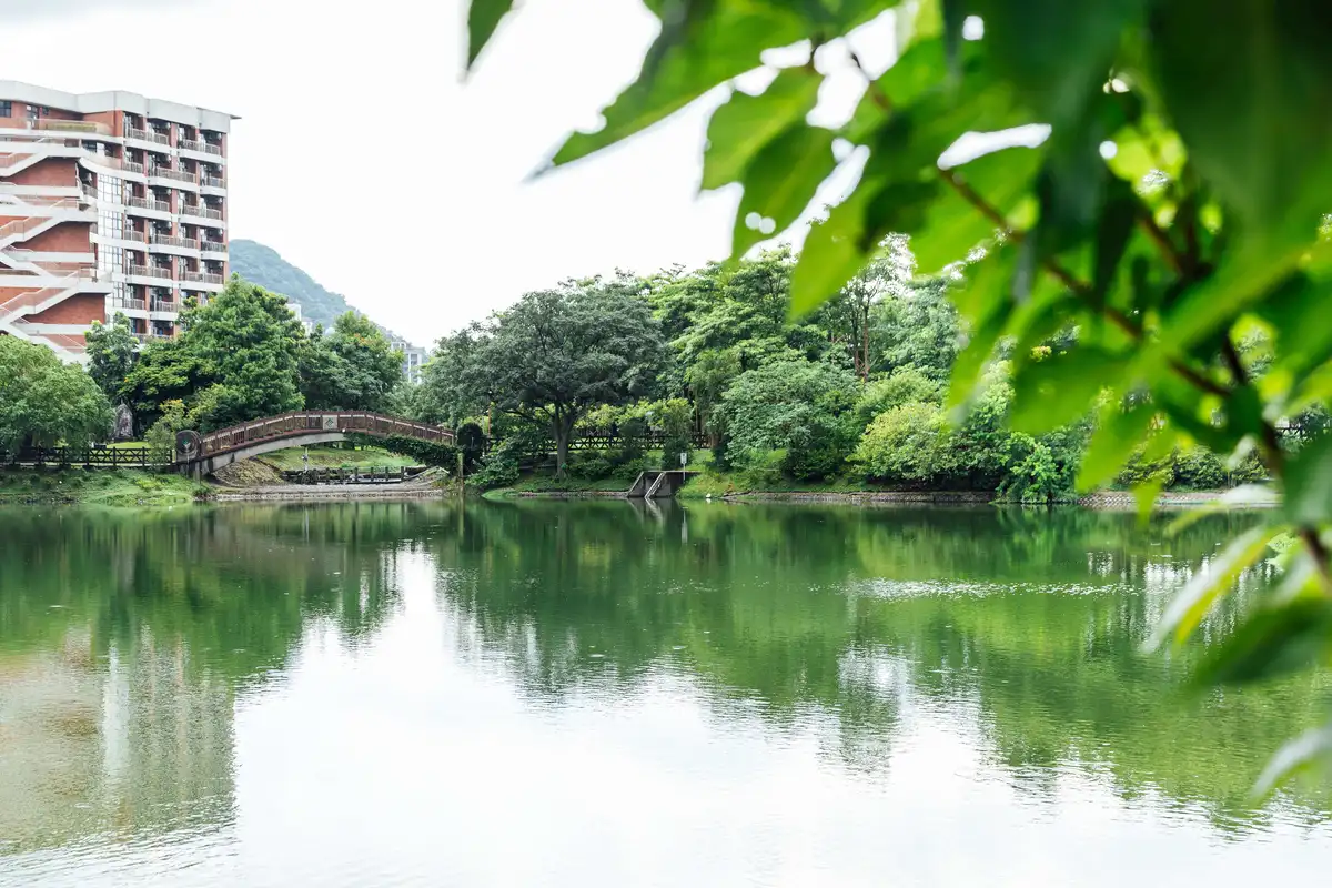 學校以圖書館為中心,前方為教學區與一整片大草地;後方則是持續蛻變中的休憩區與心湖會館,有學生餐廳、Paper Shoot Café,以及將「劉厝古圳」尾段灌溉渠道整治而成的「心湖」,作為滯洪池的同時,也形成一片愜意的生態區,黑森林、櫻花林相伴,鴨、鵝徜游其間,還有兩隻從臺中秋紅谷引進的天鵝。方正適中、對稱平坦的校地,是各年齡民眾隨時踏青放風的去處,更是許多結合社區營造與地方活動的最佳平台。